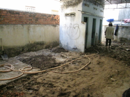 In 2008 hebben we de speelplaats en sanitaire voorzieningen van een school voor kansarme kinderen heraangelegd. De sanitaire voorzieningen waren niet zoals ze zouden moeten zoals je op onderstaande foto's kan zien. Bij het heraanleggen, hebben we ook een douche bijgebouwd. Een goede douche is broodnodig omdat de kinderen na een hele de dag op straat rond te hangen thuis niet altijd kunnen douchen (geen water, te veel mensen onder een dak, etc...). Aan de staat van de muren zagen we dat het waterpeil zeer hoog kwam en daardoor alles verwoest had. Daarom hebben we ook een put gebouwd zodat het water weg kan. Tot slot bouwden we de zandspeelplaats om tot een solide betonnen speelplaats. Hierdoor konden de kinderen niet enkel hun fietsen parkeren, maar ook gewoon op een hygiƫnische speelplaats spelen.